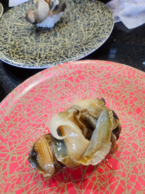 깔끔하고 정갈한 분위기 속에서 회전초밥 스타일로 다양한 스시를 즐길 수 있는 곳인데요, 사진 속에 보이는 빨간 무늬 접시에 올려진 싱싱한 소라 초밥이 특히 인상적이었답니다.