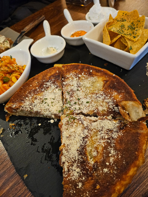 호맥의 대표 메뉴는 바로 이 '호떡'입니다. 우리가 알던 길거리 간식의 완벽한 변신! 겉은 바삭하고 속은 쫀득하며 달콤한 소가 가득 차 있어요. 피자처럼 조각내어 다양한 소스와 곁들여 먹는 재미가 쏠쏠합니다.