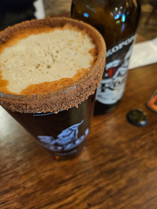 호맥에 왔다면 이건 꼭 마셔야 해요! 바로 '코젤 다크 시나몬'입니다. 컵 가장자리에 달콤쌉싸름한 시나몬 가루가 듬뿍 묻혀져 나오는데, 흑맥주의 깊은 풍미와 어우러져 정말 환상적인 맛을 냅니다. 첫 모금에 '와!'하는 감탄사가 절로 나올 정도예요. 병으로 줘서 더 안심되요. 어제도 지나가다 봤는데, 지금 코젤다크 3병 주문시 1병 무료 이벤트 중이더라구요. 또 가야겠어요.