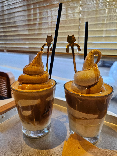 특히 고양이 모양의 귀여운 골드 스푼과 함께 제공되어서, 사진 찍기에도 너무 예뻤답니다. 친구와 함께 나누며 천천히 음미하니, 일상의 소소한 힐링 타임이 되었어요.